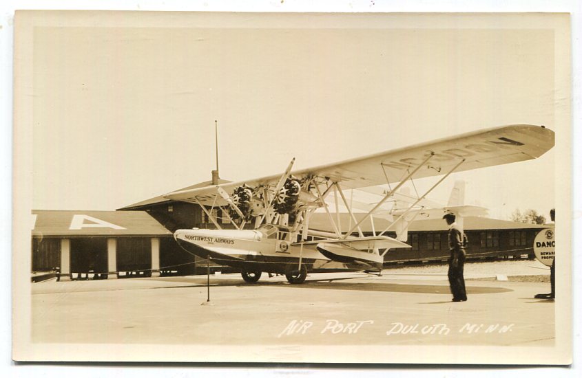 AIR16. | NWA , A RARE Northwest Airways Sikorsky S-38 on tarmac at Duluth, MN. airport. Card is standard size, C.1931/1932. Pan American was the Initial U.S. operator in Oct. 1928 after 1st Flight in June 1928, unused Back | EX $80.00 |