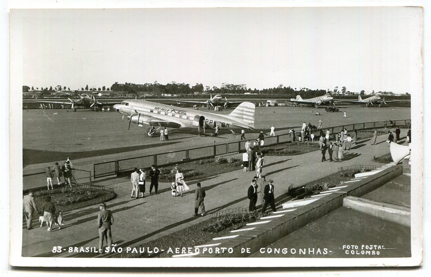 | AIR18. | Sao Paulo , A Great view of Sao Palo Aeroporto De Conganhas, Brazil. RPPC is standard size, C.'40s There's a REAL DC-3 front and center, but what's REALLY SCARCE IS A Sociedade Anônima Viação Aérea Gaúcha DC-3 WHICH IS SECOND TO THE LEFT OF THE LAST DC-3 ON THE TARMAC. They started operations in 1946 that operated mainly in the state of Rio Grande do Sul. They were acquired by Cruzeiro do Sul in 1966, unused Back , GAUCHA DC-3 | EX $30.00 |