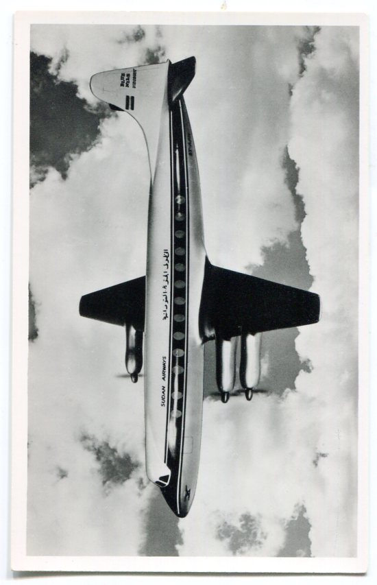 AIR20. | Sudan Airways , A Scarce Sudan Airways Viscount in flight. Card is standard size. Sudan Airways started its Blue Nile Flights to the European cities, using Vickers Viscount in June 1959, used Back | EX $35.00 |