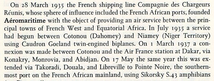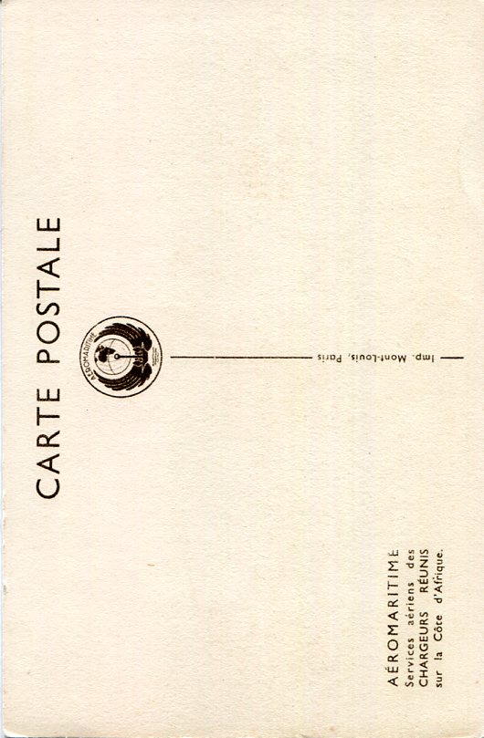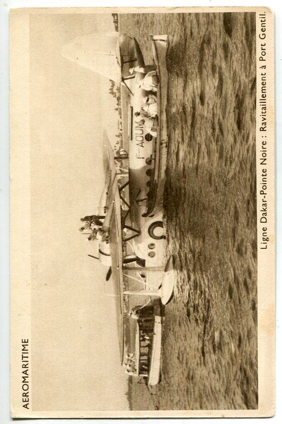 | AIR3. | Aeromaritme , A Great shot of a Aeromaritime Sikorsky S-43 at anchor at Dakar-Ponte Noire, North Africa. Card is standard size, C.1938/1939. Has lower rt. & lft. bottom corner wear. I SAY 1938/1939 BECAUSE THAT'S WHEN WORLD WAR 2 BROKE OUT IN SEPTEMBER. They started operations Sometime in 1939, anc Ceased operations sometime in 1939. Only Fifty-Three S-43s were built between 1936 to 1941, unused Back , Aeromaritime Information | VG $17.00 |