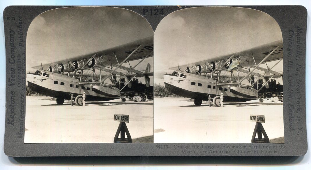 | MSC10. | PAA StereoView , A Keystone View Company Pan American S-42 steroView card, C.1934/1935. Item measures 7" x 3 1/2". The S-42 flying boat carried 15 passengers that entered service with PAA in August 1934, and was the sole customer for the S-42(10 Were Built), used Back , View @ 150dpi , View Back @ 150dpi | VG to EX $20.00 |