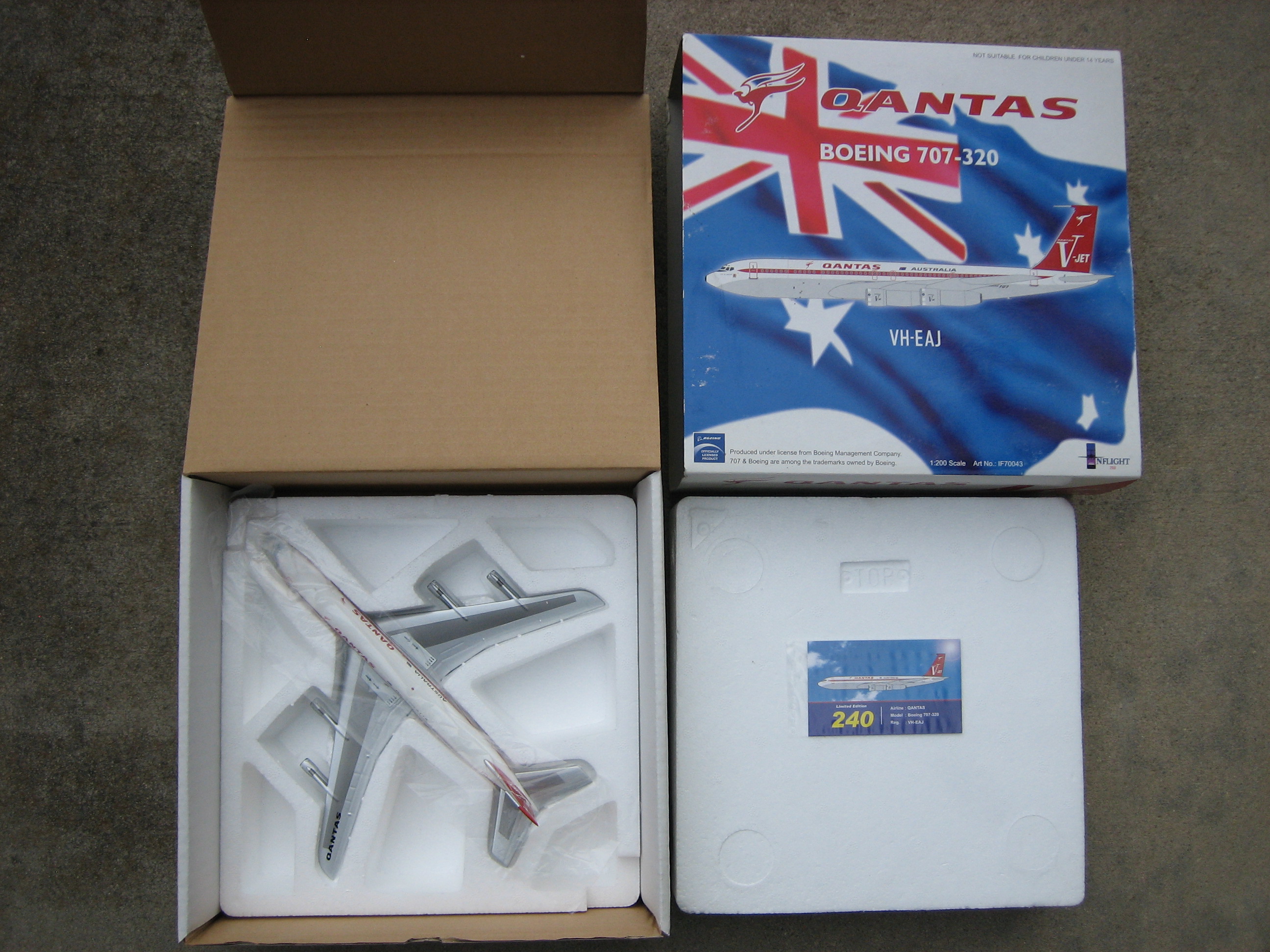 MSC12. | Qantas , A Qantas B-707=320(VH-EAJ) Inflight 1/200 model, IF70043. Model is 20 years old, that I acquired from the Owner of Inflight models: FREE MAILING BOX INCLUDED IN THE PRICE SHOWN, used View 1 , View 2 , View 3 , View 4 | MINT $160.00 |