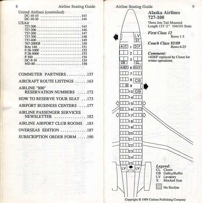 MSC15. | AIRLINE SEATING GUIDE U.S. EDITION, A Very Scarce "Airline Seating Guide U.S. Edition" dated October 1989. Item measures 4 1/4" x 8 3/3" with 192 pages, used Airlines & Aircraft , Airlines & Aircraft , Airlines & Aircraft & Alaska B-727-100 , View 1 , View 2 , View 3 , View 4 , View 5 , View 6 | EX $30.00 |