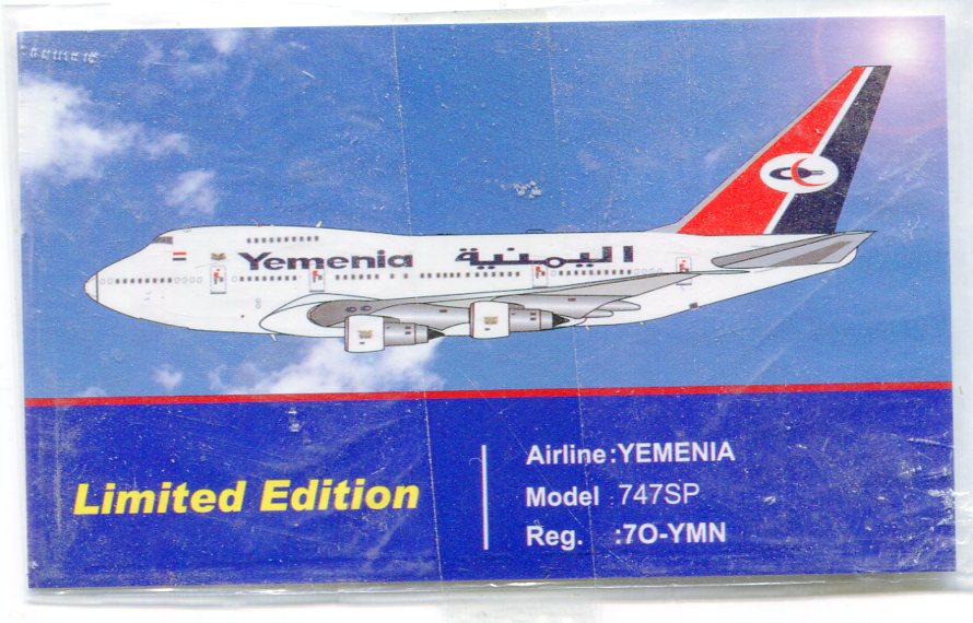 MSC22. | Yemenia B-747SP , A RARE Yemenia Airways B-747SP Inflight 1/200 scale model. U can LOOK on Ebay, but U will find ZERO listed. JUST A BRILLIANT SPECIMEN: FREE MAILING BOX IS INCLUDED IN THE PRICE, UNUSED Close UP View , Card | MINT $160.00 |