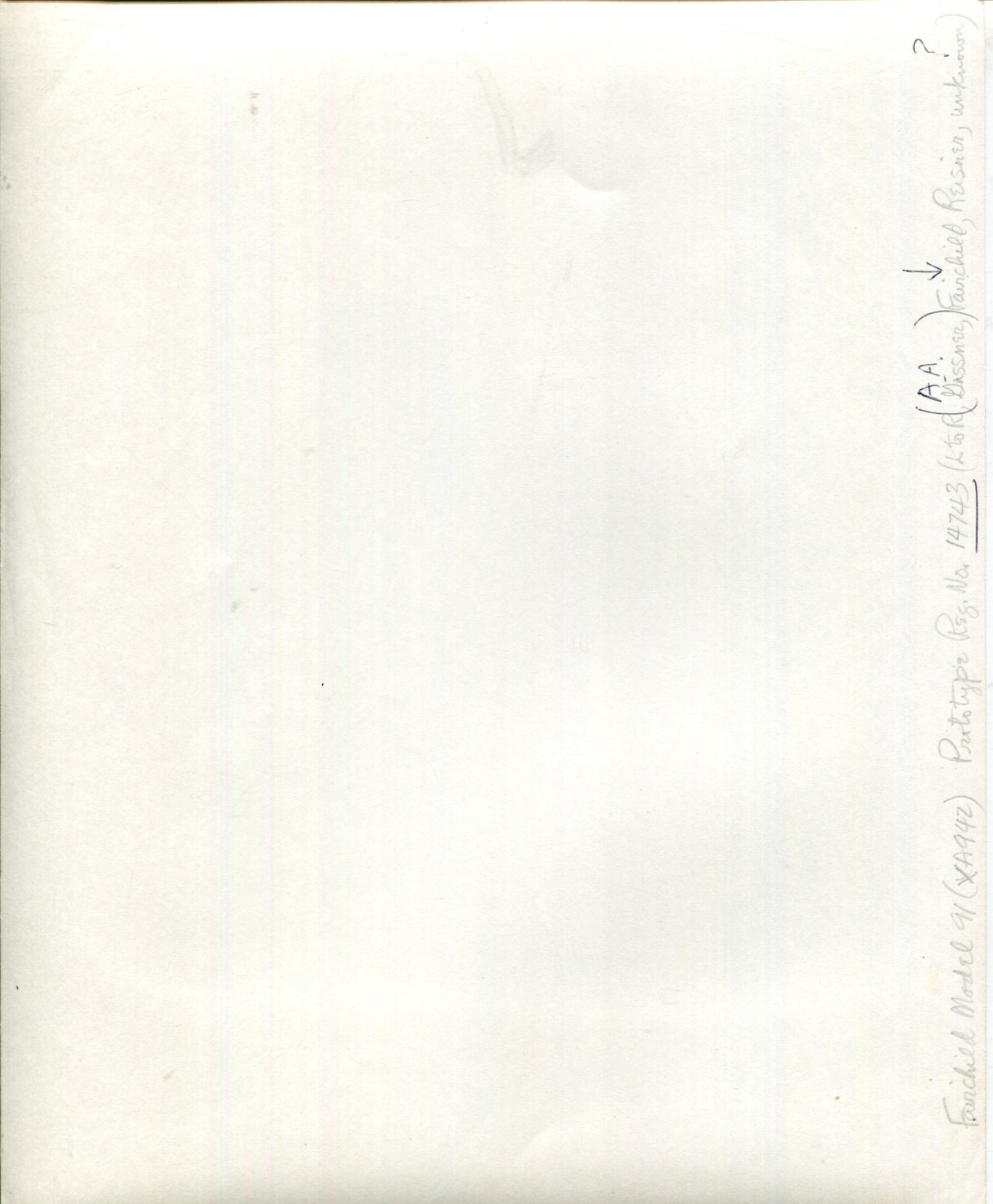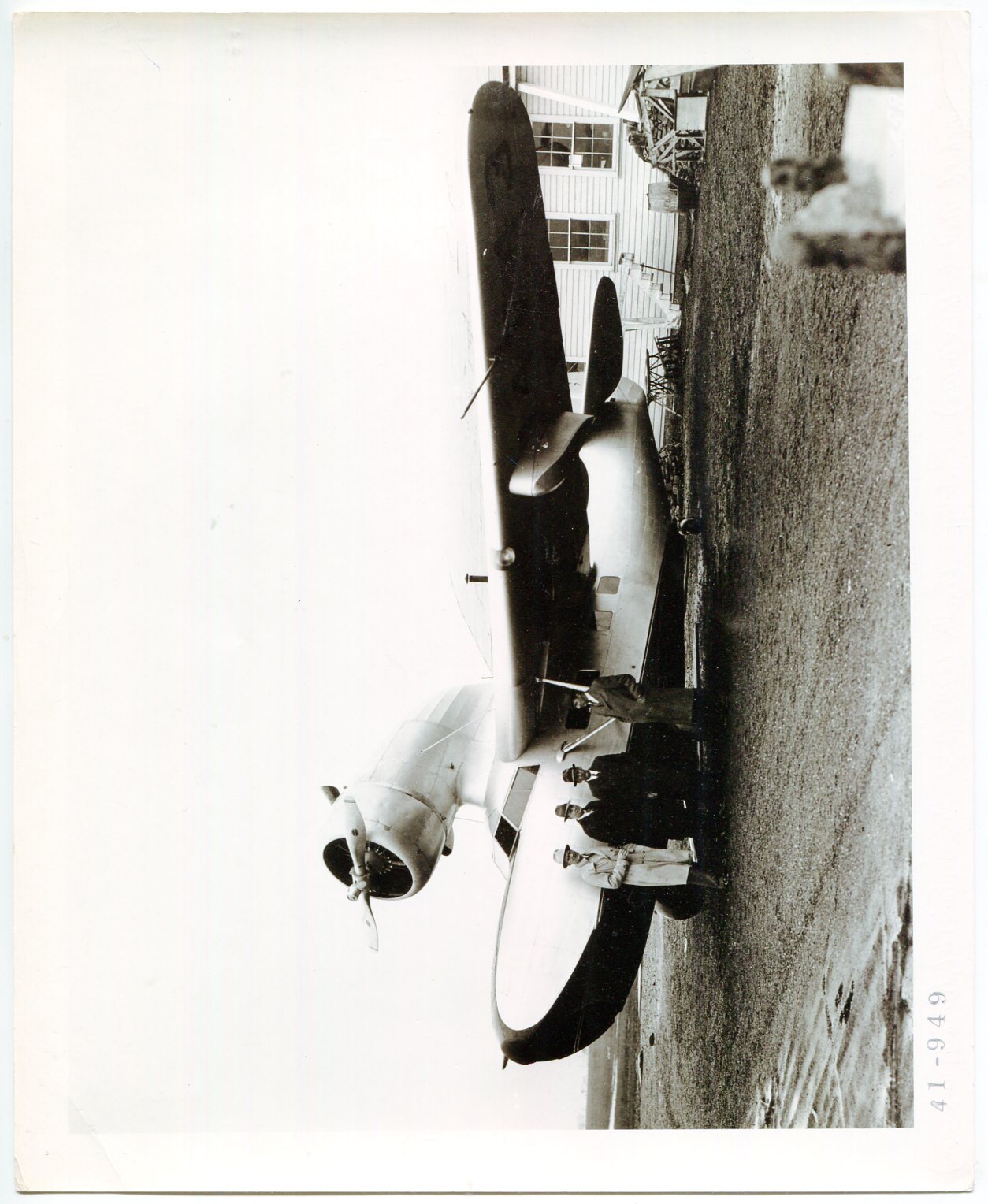 | MSC28. | Fairchild Model 91 , A Very Scarce Fairchld Model 91(XA942) prototype Registration 14743 amphibian photograph. Item measures 10" x 8" with some notes on the back at the bottom. Has a up. lft. cor. area crease, one crease in the middle top border, one grass mini crease and the writing on the back shows through in the bottom white border when holding photo to the light. The gentlemem in the biege coat is A.A. Gaaaner who worked for Fairchild and helped develop the Model 91. This prototype MSN 9401, Registration as Built NC14743, Delivery Customer: None-Prototype, Notes: to Spanish Aviación Nacional as 63-1 Virgen de Chamorro, scrapped 1941. Fairchild designed the aircraft in response to a Pan American Airways request for a small flying boat to operate on their river routes along the Amazon and Yangtze. But, PAA?Panair only used them in there Brazilian Amazon River operations, used Back & Scroll Down | VG $12.00 |