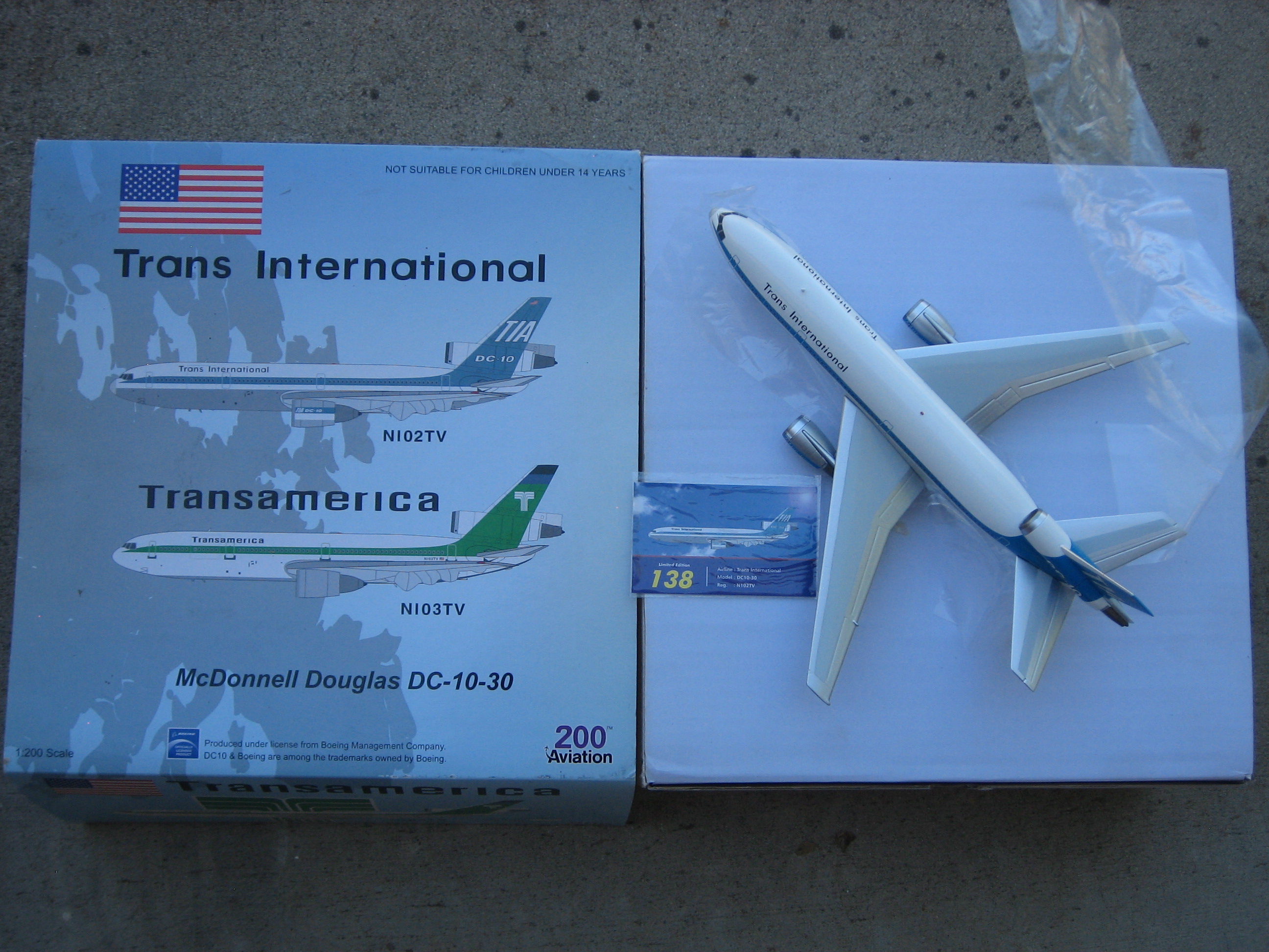 MSC30. | TIA DC-10 , A SUPER RARE Aviation 200 TIA, Trans International Airlines DC-10(N102TV) 1/200 model. U can LOOK on Ebay and U will find ZERO listed, as A VERY LIMITED PRODUCTION RUN OF 138. JUST A BRILLIANT SPECIMEN, UNUSED Close UP View | MINT $300.00 |