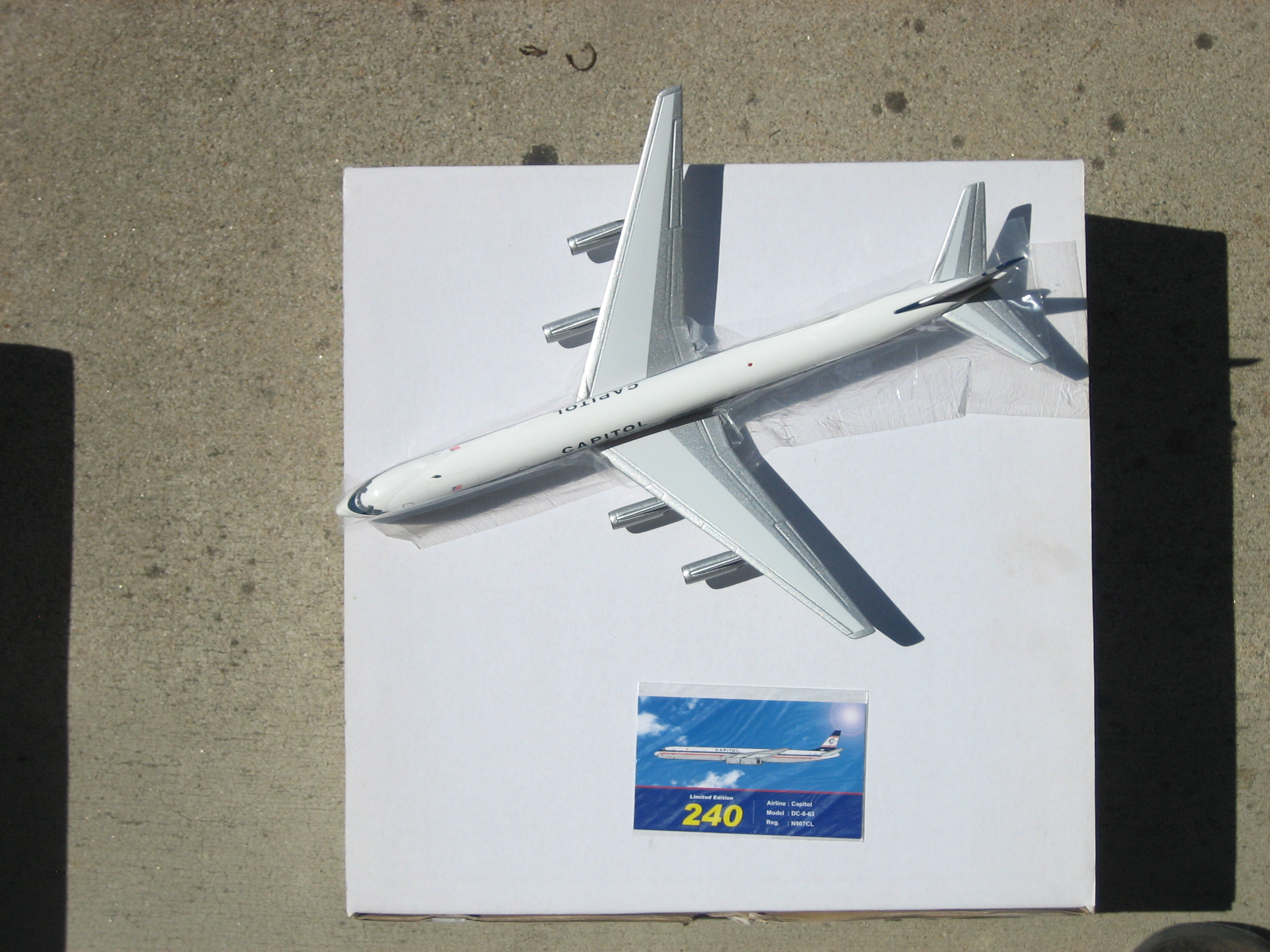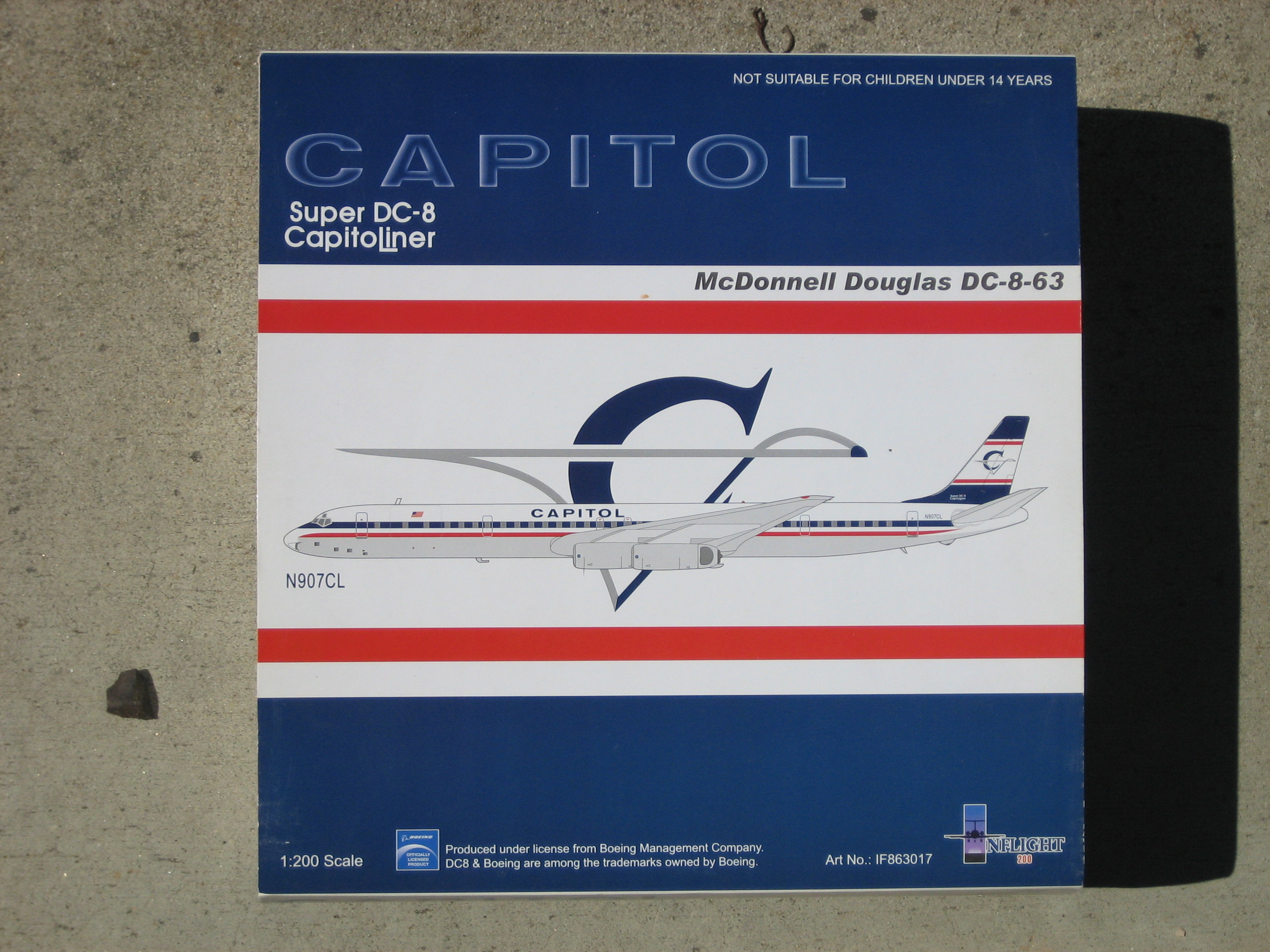 MSC32. | Capitol Super DC-8-63, A MINT in the Origianl box SUPER DC=8-63 Capitollinr 1/200 scale LIMITED EDITION OF 240 Inflight model: FREE MAILING BOX IS INCLUDED IN THE PRICE, used View 1 , View 2 | EX $125.00 |