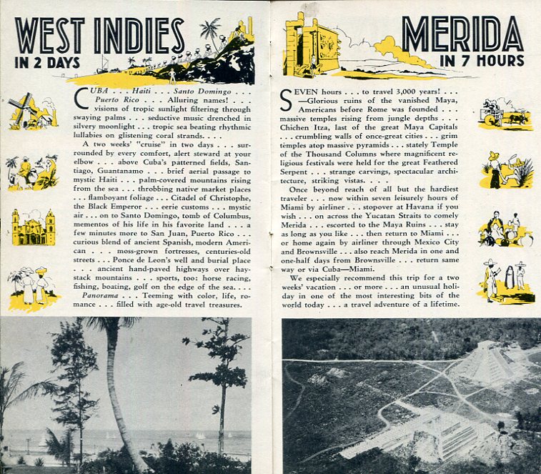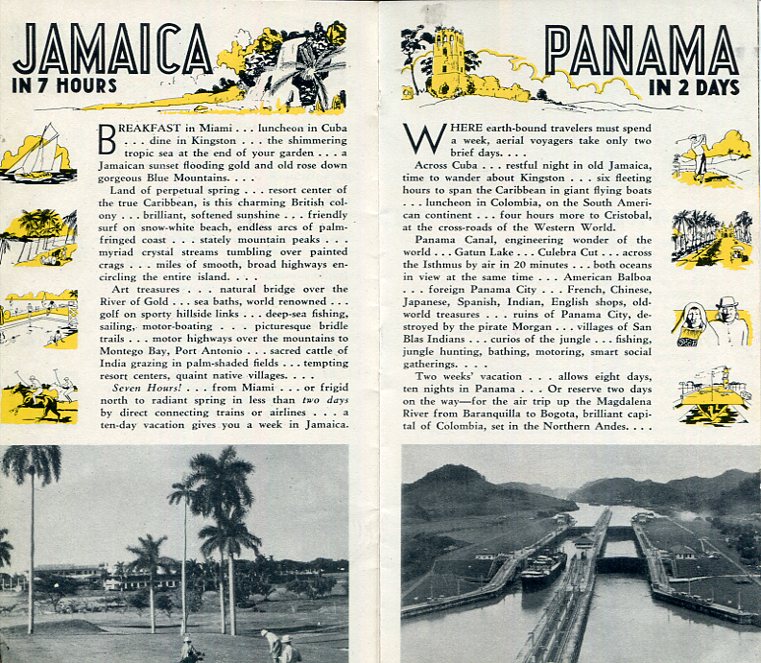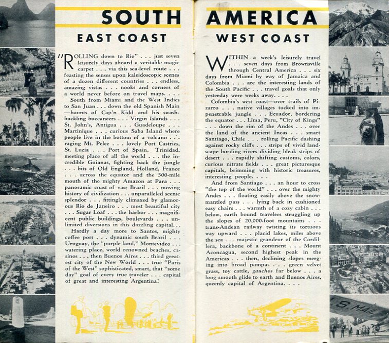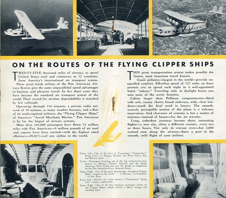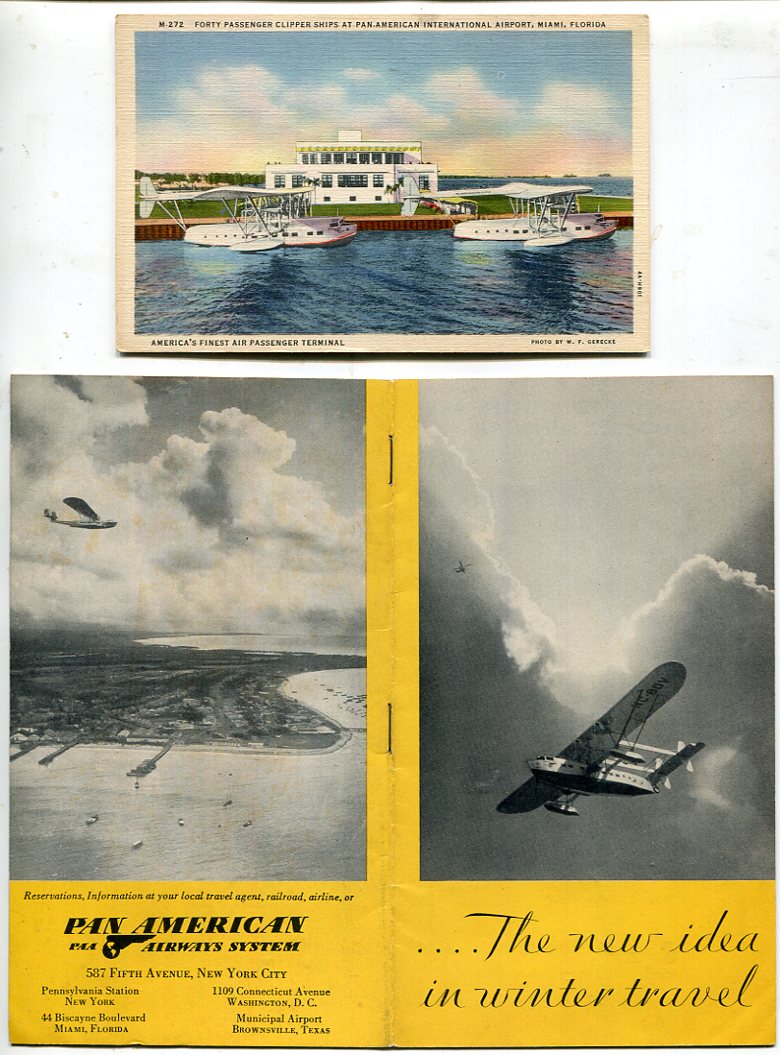 MSC35. | PAA Airways System , A PAA Airways System , A Scarce Sikorsky S-40 covered Pan American Airways System "The New Idea in Winter Travel" brochure, and a PAA S-40 postcard. Also featuring their Commodore 20 Flying boats, C.1932. Item measures 4" x 7' with 14 pages which includes the inside of Front & Back covers. Only 3 S-40s were built and all three entered service with PAA in November 1931. In 1935, all three aircraft were upgraded and re-designated as the Sikorsky S-40A's:more Powerful Supercharge Engines, eliminating the landing gear and increasing the maximum weight slightly, used FRONT OF BROCHURE & POSTCARD , View 2 , View 3 , View 4 , View 5 , View 6 , View 7 | EX $30.00 |