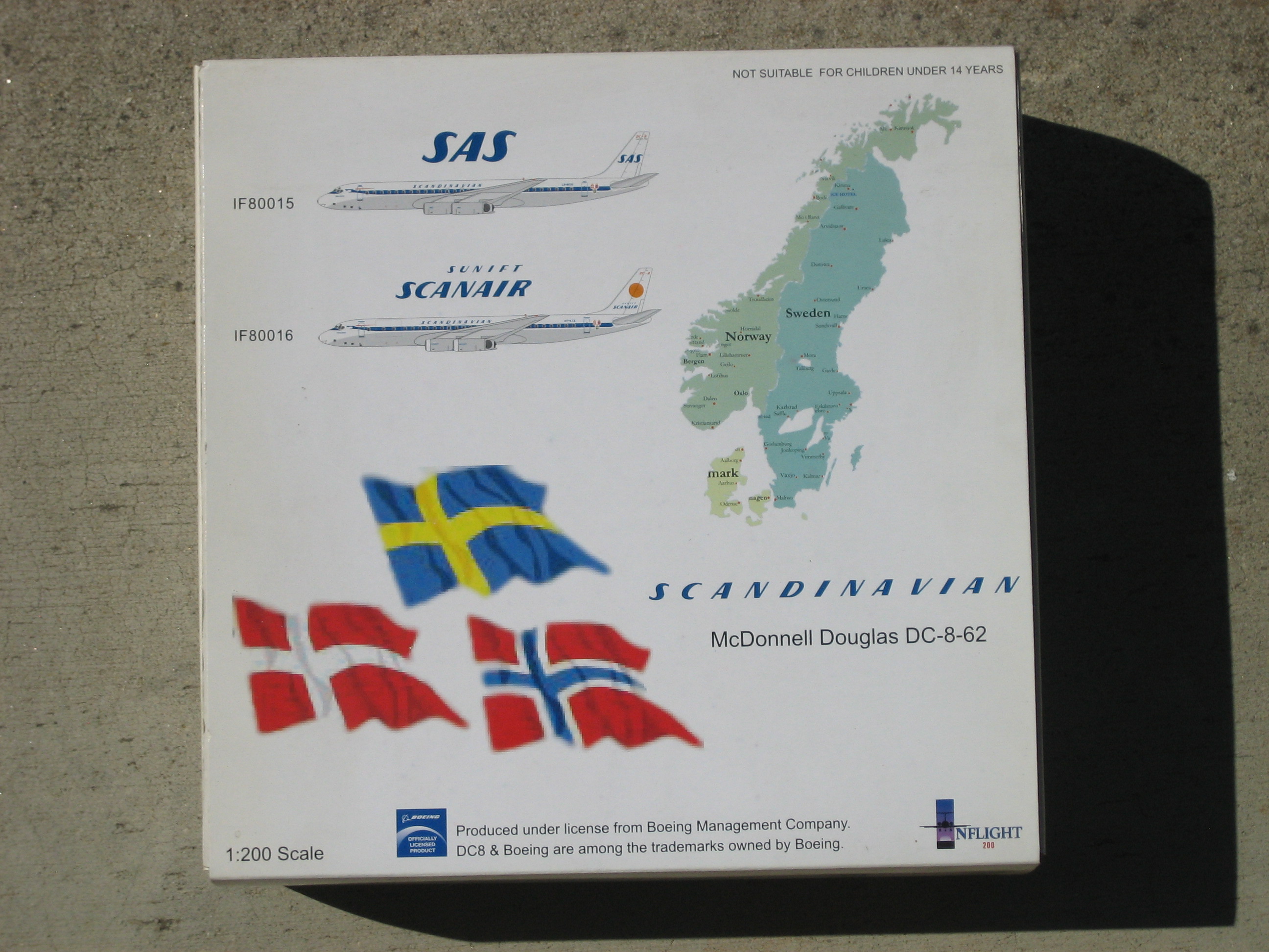 MSC45. | SAS Super DC-8-62 , A SCANDINAVIAN SCANAIR DC-8-62 1/200 scale Inflight model in the origianl box from DAYS OF OLD: FREE MAILING BOX IS INCLUDED IN THE PRICE, UNUSED View 1 , View 2 , View 3 | MINT $149.00 |