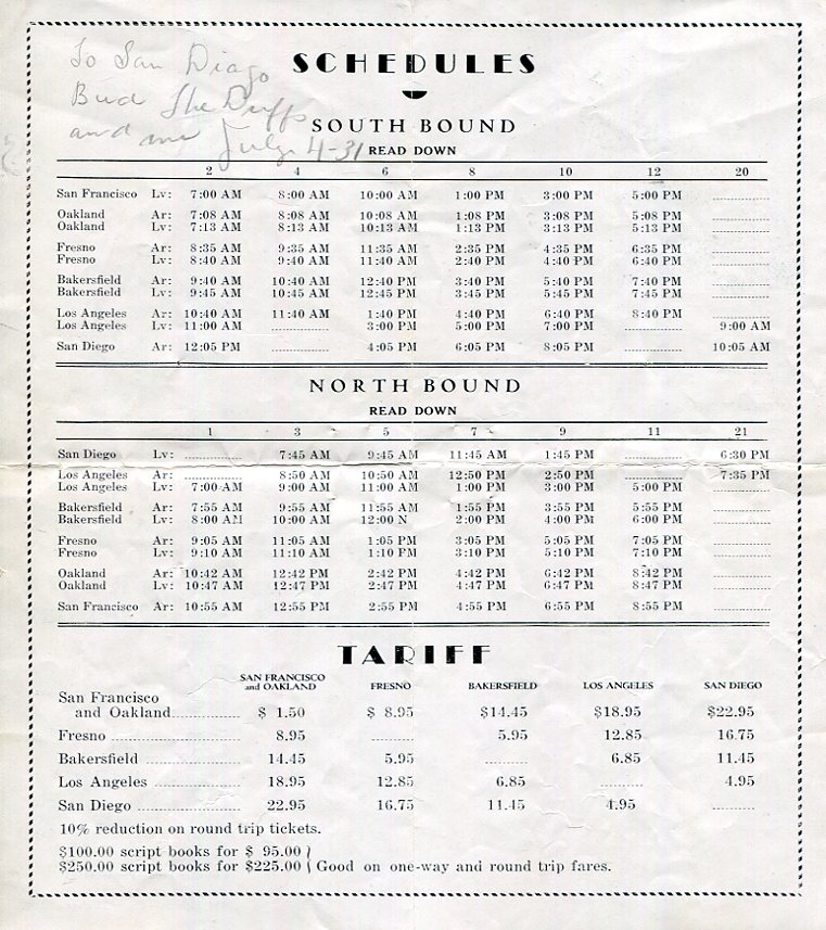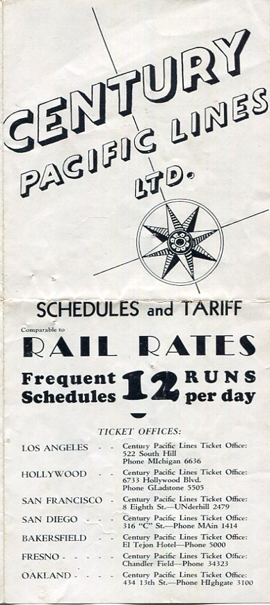 TAB12. | Century Pacific , An Century Pacific Lines "INAUGURAL" California schedule dated July 1,1931. TT measures 4" x 9", two paged with a horizontal crease. I love the Passenger writing(pencil) inside, used Back Cover , Schedule , Century Pacific Information | G $28.00 |