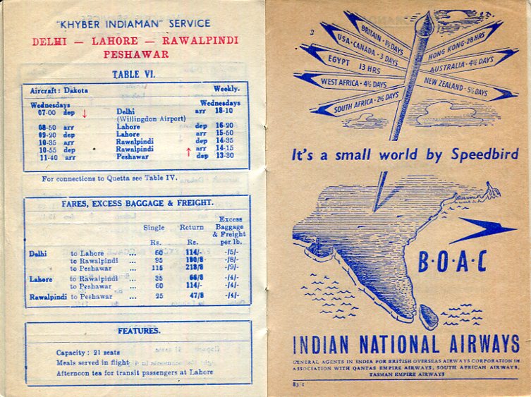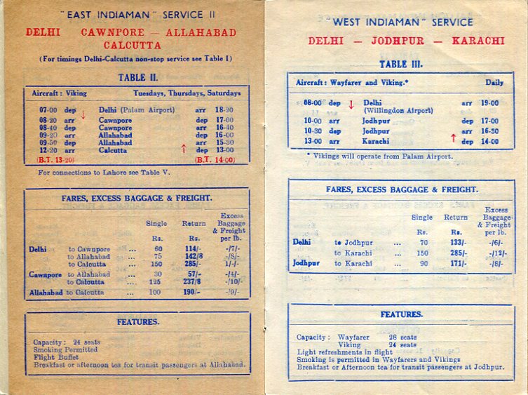 | TAB23. | I.N.A. , A Indian National Airways system schedule dated August 1947. TT measures 4" x 6" with 10 pages which includes the insides of Front and Back covers, used Sample Schedule , Sample Schedule | EX $39.00 |