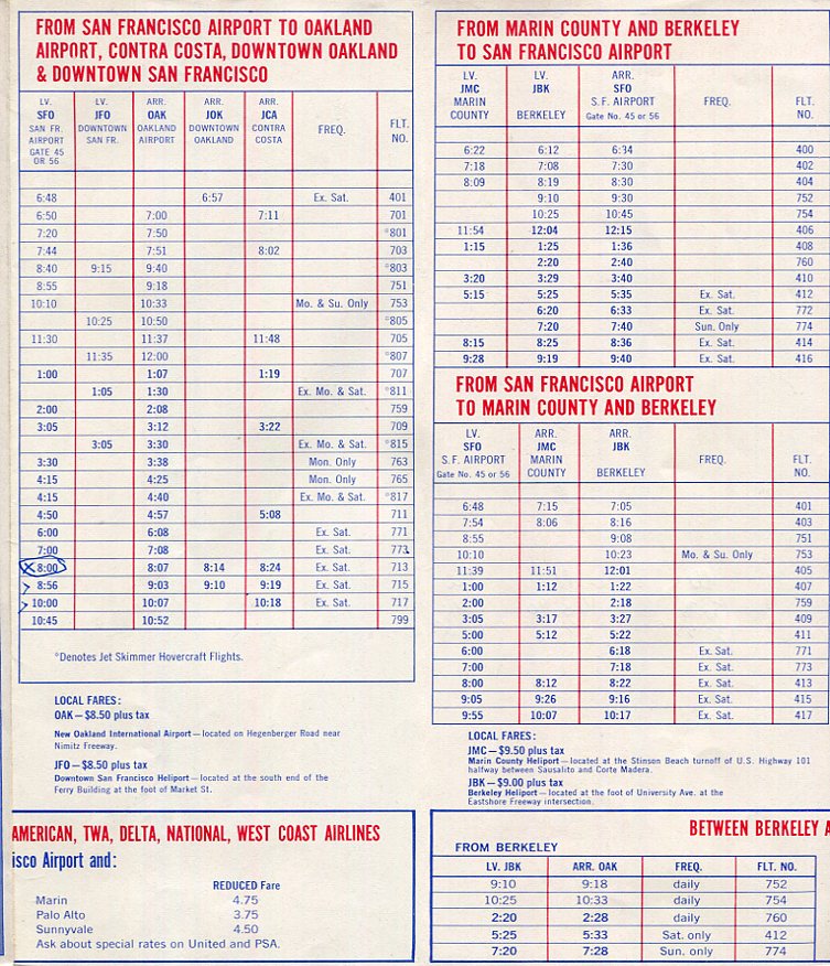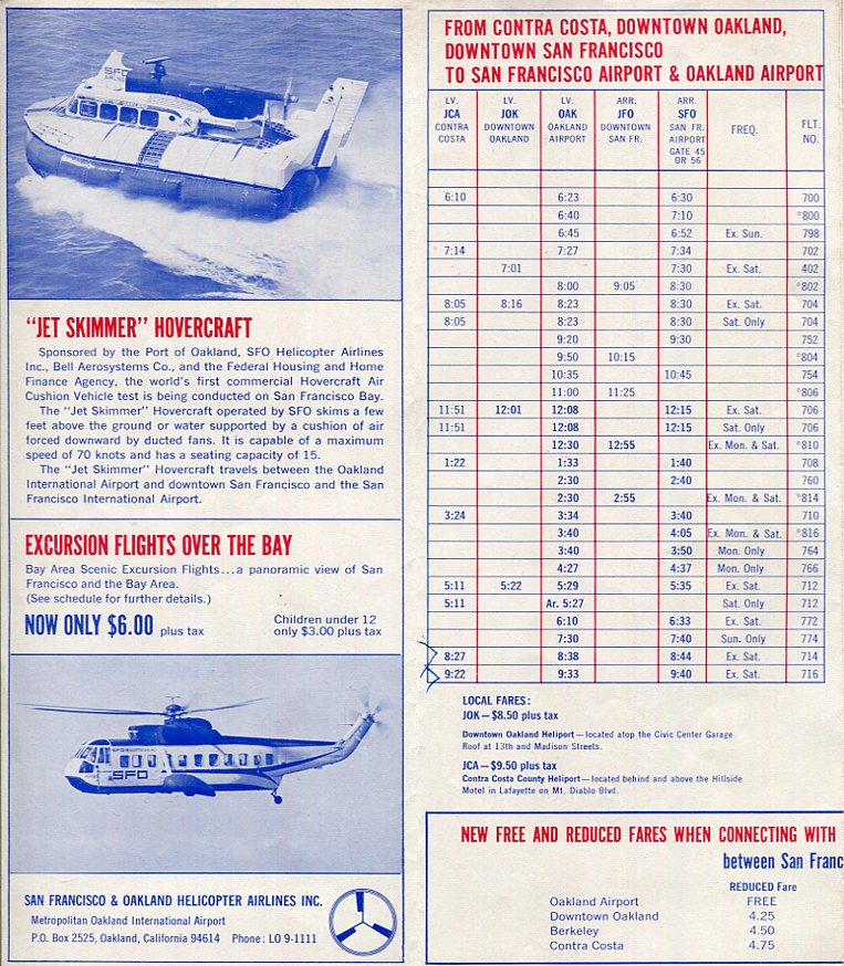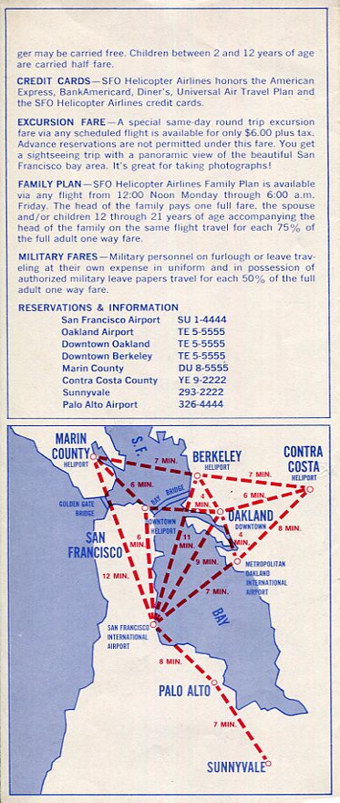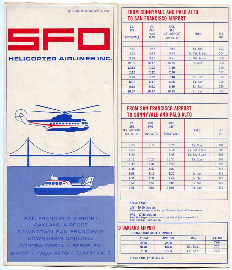 TAB3. | SFO , A Cool S-61N & Jet Skimmer Hovercraft covered SFO Helicopter Airlines Inc. schedule dated Sept. 1,1965. TT measures 4" x 9 1/4" with 5 panels, used Route Map , Schedule , Schedule | EX $7.00 |