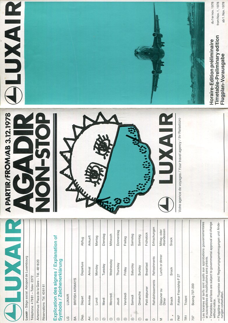 TAB38. | Luxair, A LUXAIR prelimiary schedule dated Nov. 1, 1978. TT measures , used Schedule | EX $5.00 |