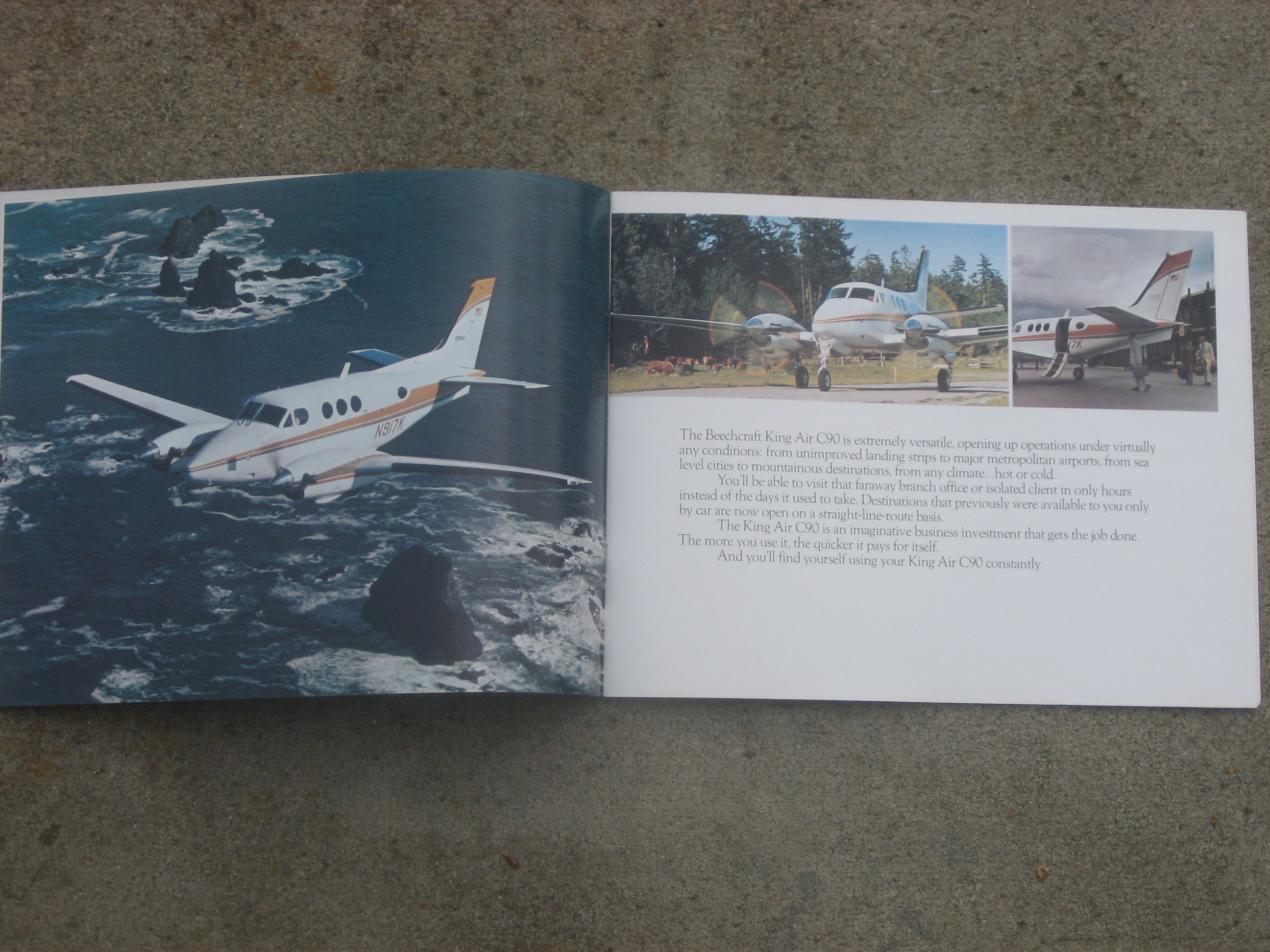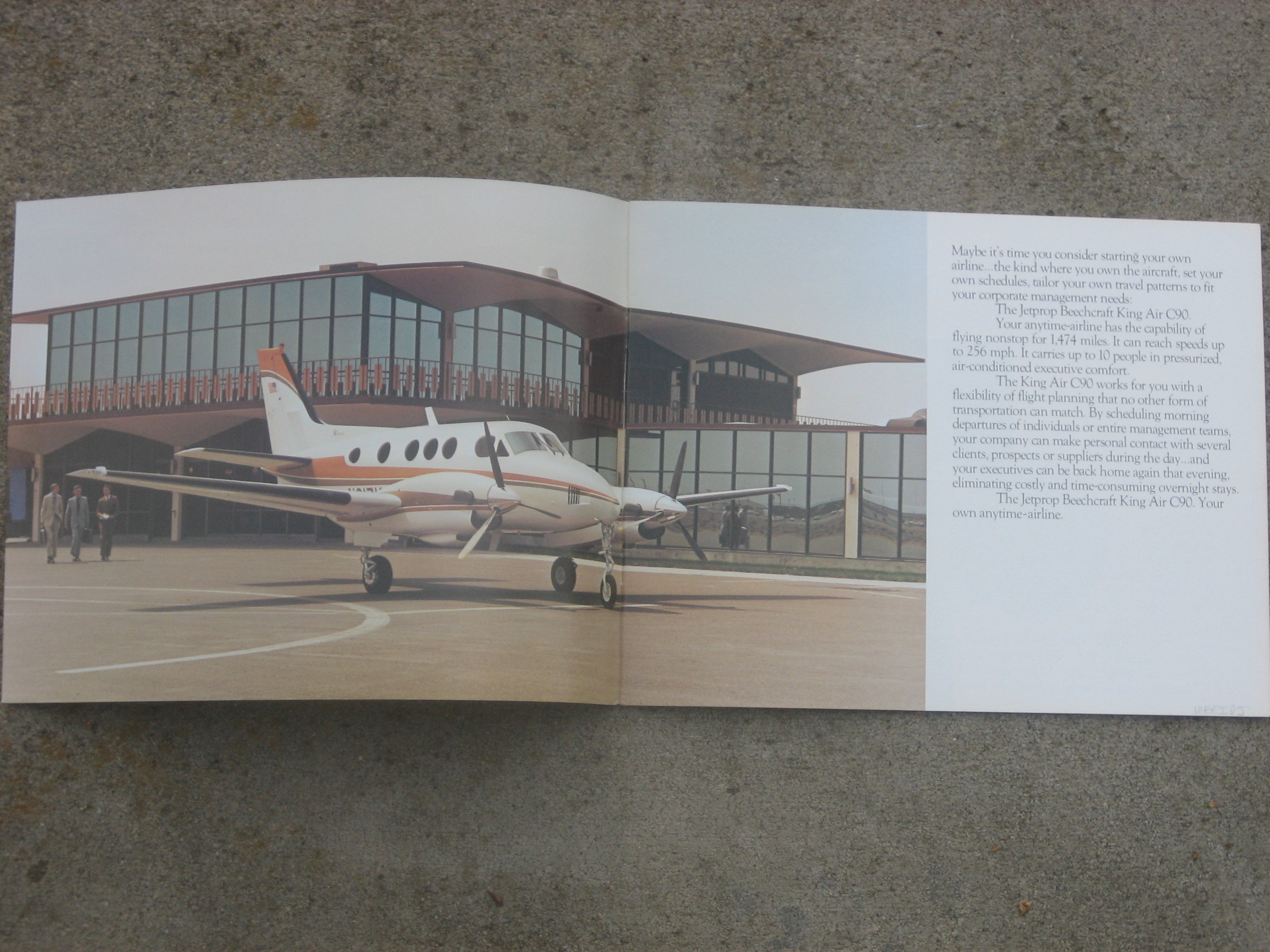 MCV1. | Beechcraft King Air C90, A Cool covered Jetprop Beechcraft King Air C90 brochure for 1978. Item measures 11" x 8 1/2" with 21 All Color pages. the Model C90 was introduced in 1971, with wingspan increased over earlier models by 4 ft 11 in (1.50 m) to 50 ft 3 in (15.32m). Maximum Take-Off Weight (MTOW) increased by 350 lb (160 kg) to 9,650 lb (4,378 kg), and PT6A-20A engines. IF PLUS SIGN ( + ) SHOWS OVER THE IMAGE, CLICK TO MAGNIFY, used Inside , Inside , Inside , Inside , Inside | EX $12.00 |