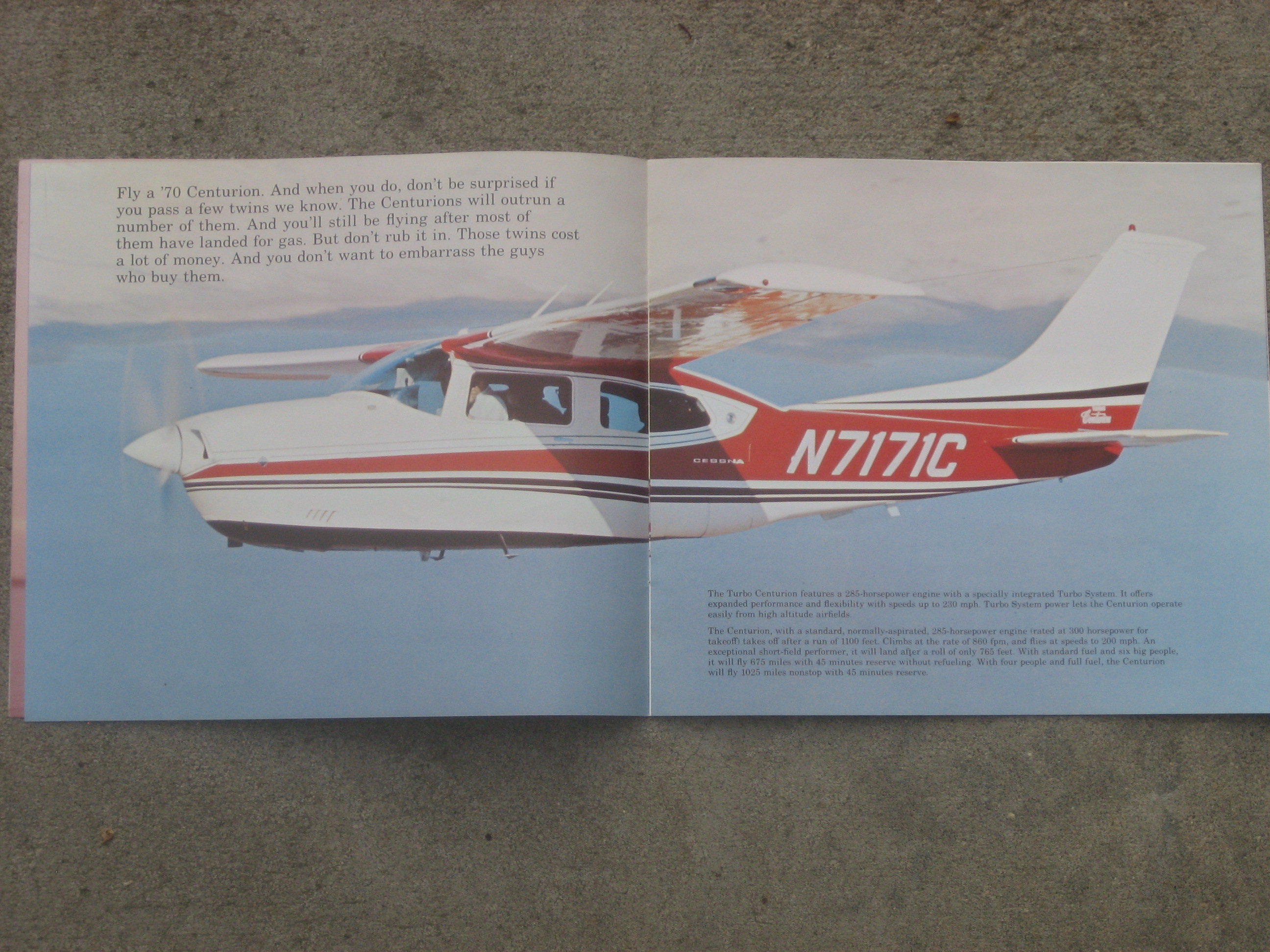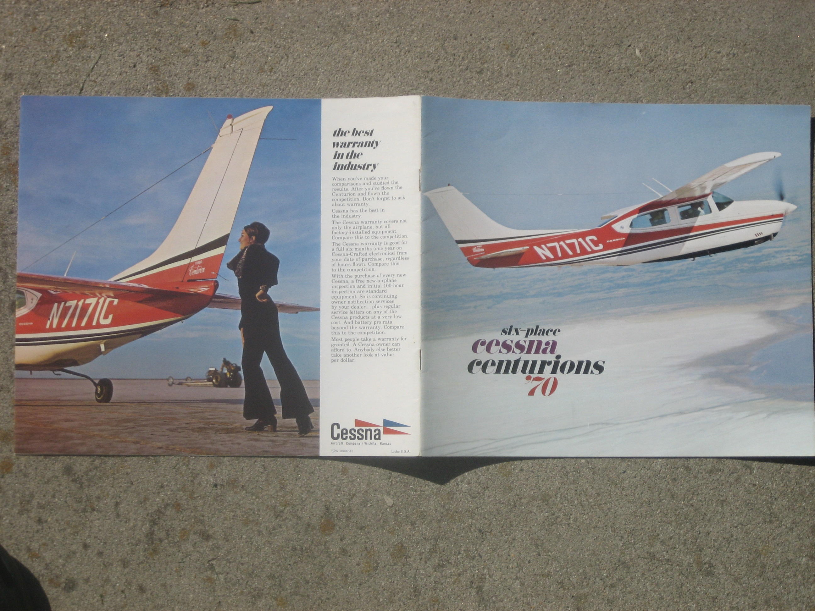 MCV2. | Cessna Centurions , A Very Cool Six Place Cessna Centurions '70 brochure. Item measures 11" x 8 3/4" with 12 All Color pages. IF PLUS SIGN ( + ) SHOWS OVER THE IMAGE, CLICK TO MAGNIFY, used View 1 , View 2 , View 3 , View 4 , View 5 , View 6 | EX $17.00 |